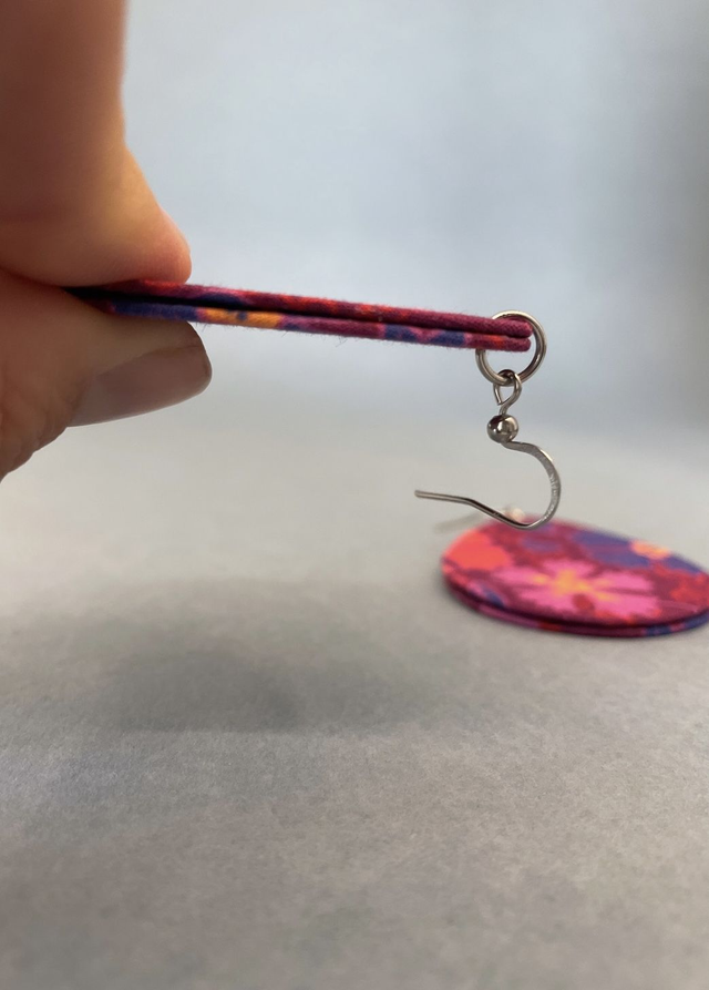 Elles sont réalisées à la main dans mon atelier et chaque paire est unique grâce aux motifs du tissu. Votre paire de boucles sera donc légèrement différente de la photo, mais sera bien confectionnée avec ce même tissu. Le tissu me sert à tapisser le carton sur chacune des faces des boucles d’oreilles.