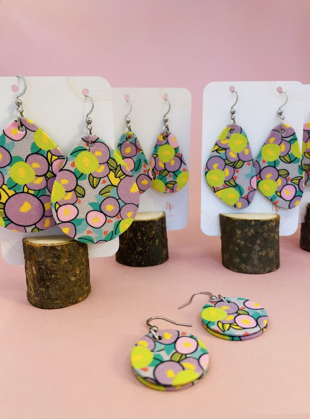 Elles sont réalisées à la main dans mon atelier et chaque paire est unique grâce aux motifs du tissu. Votre paire de boucles sera donc légèrement différente de la photo, mais sera bien confectionnée avec ce même tissu. Le tissu me sert à tapisser le carton sur chacune des faces des boucles d’oreilles.